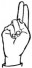 На ћирилици написано ПЕТАК УЊИЋ састоји се из 9 слова [?]. Исписано ћириличном једноручном азбуком за глувонеме:
